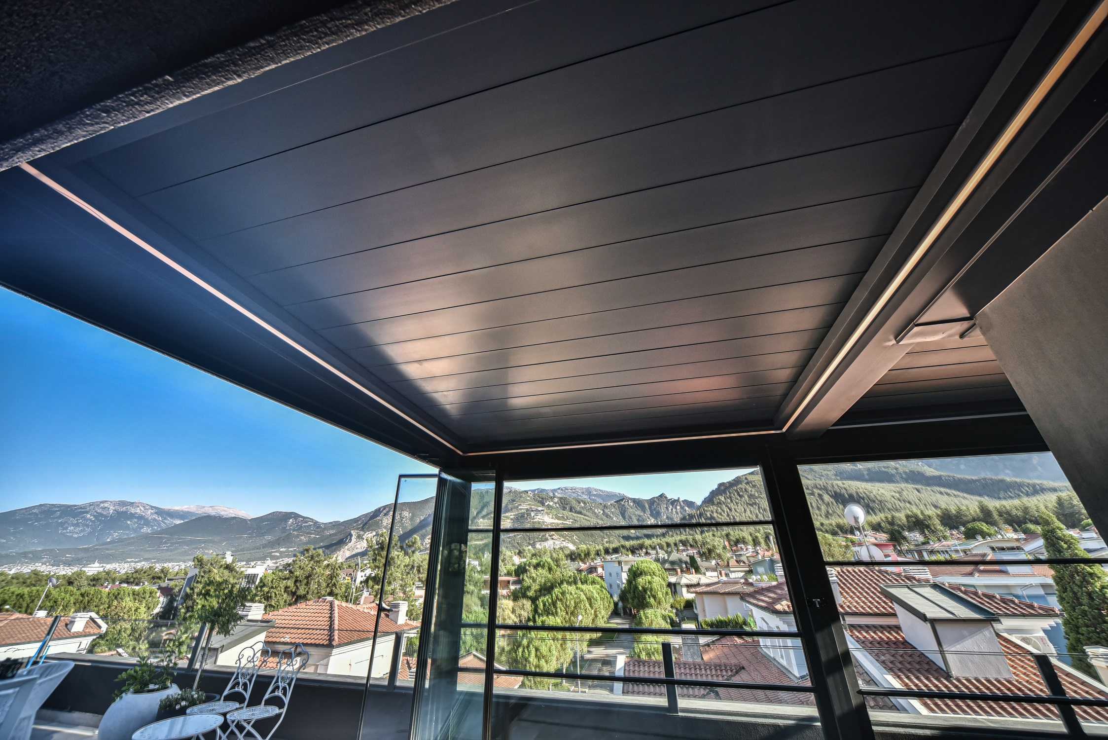 UYGULANAN ÜRÜNLER: BİOKLİMATİK PERGOLA (ROLLİNG ROOF) - GİYOTİN CAM - KATLANIR CAM