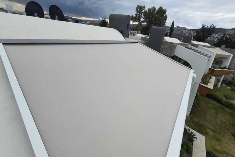 ÜRÜN AÇIKLAMASI: Tavan perdesi sistemleri bioclimatik alüminyum tavan veya cam tavan sistemlerinin alt kısımlarına ve boş tavanlara uygulanabilmektedir. 4 mevsim şartlarına uygun olarak tasarlanmıştır. Boş tavanlarda ya da cam ve alüminyum bioklimatik pergola sistemlerinde sizleri güneşin olumsuz etkilerinden korur. Tavan perdesi, yatay zip perde olarak da uygulanabilmektedir.